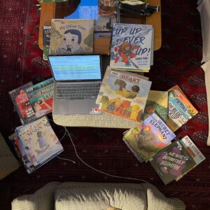 Once I had decided on my mock award, I needed to select the books we would consider. The EJK Foundation provided a list of books for consideration. I requested them all from my public library and ended up with a very large stack. As I read each of them, I kept notes in a spreadsheet and physically sorted and resorted the books into categories as I narrowed down the list to a manageable number.