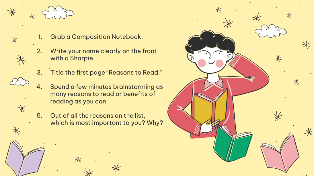 To help students gain a more personal investment in their reading, I asked them to reflect in their notebooks on which reasons were most important to them and why.