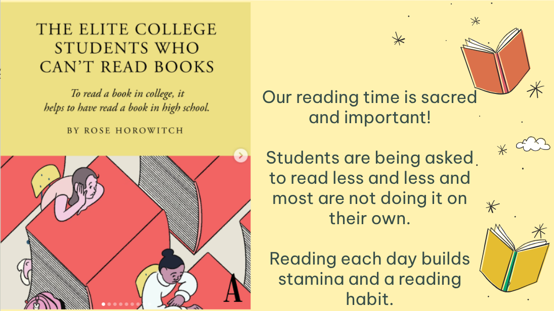 I’ve always tried to be transparent with students and parents about my choices in the classroom. When I changed my late-work policy, I explained the circumstances that changed my thinking and how I weighed different options. When I shifted to a new way of approaching vocabulary, I shared the research that informed my decisions with parents and students. Somehow, despite being passionately committed to independent reading in my classroom, I had forgotten to make the case for it.