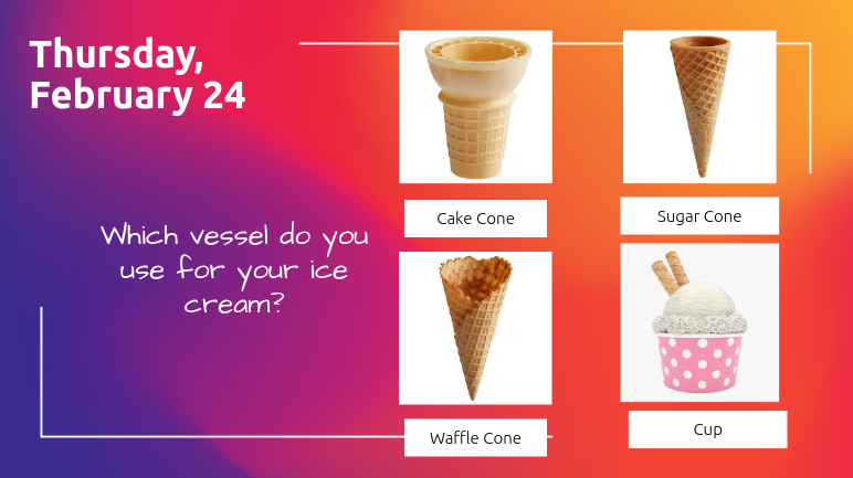 As time went on, I got a little more creative with questions and began asking students for suggestions. For example, I posted a Google Form at the top of our Google Classroom where students could suggest questions whenever an idea popped into their heads. Also, since all of my students celebrated Thanksgiving and Christmas one year, I had them submit their picks for best Thanksgiving food and favorite Christmas song or carol. I paired the selections for daily voting in a bracket style, so by the end of November we would have a winning Thanksgiving food (pumpkin pie) and by the end of December we would have a winning Christmas song (“Mistletoe” by Justin Bieber).
